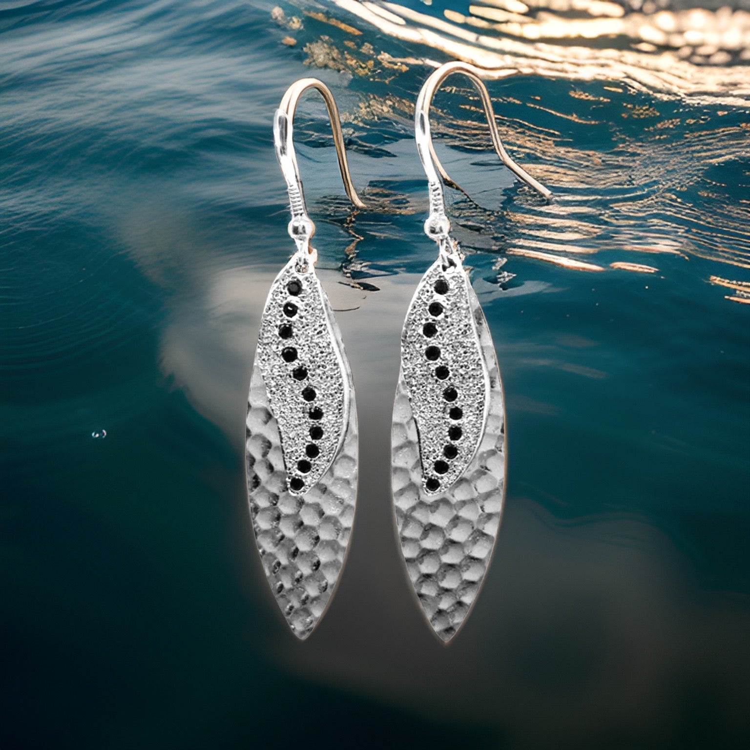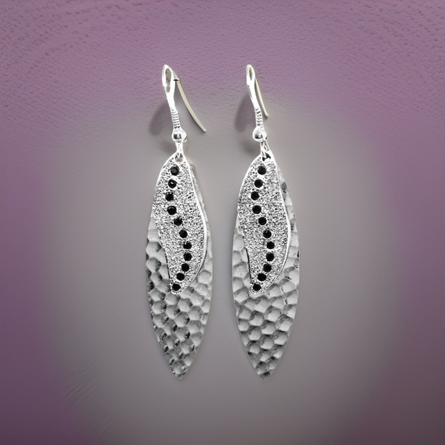 $40.00Hand Painted Black & White Marbleized Hammered Wavy Dangle Earrings by The Urban Charm